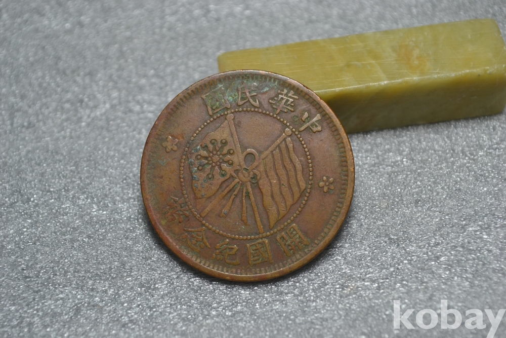 " 귀한종류 ~ " 중화민국 개국기념폐 10 CASH ~ 10문~ 큰지름 28 mm ".. " 중화민국 중국동폐(쌍기) 개국기념폐 10 CASH 쌍기 10문 ".. 진품 중국동폐 / 지금은 수집이 어려운 귀한종류~