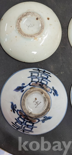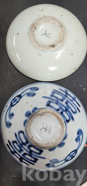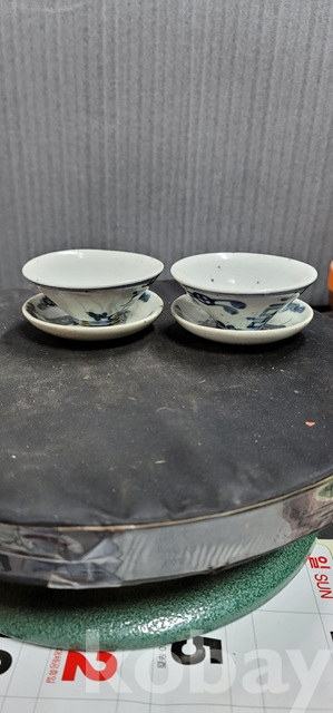 d-170.오래된 청화백자찻잔과 잔타2셌트일괄