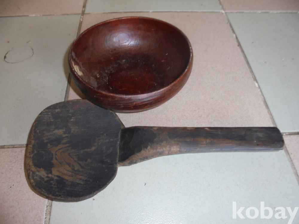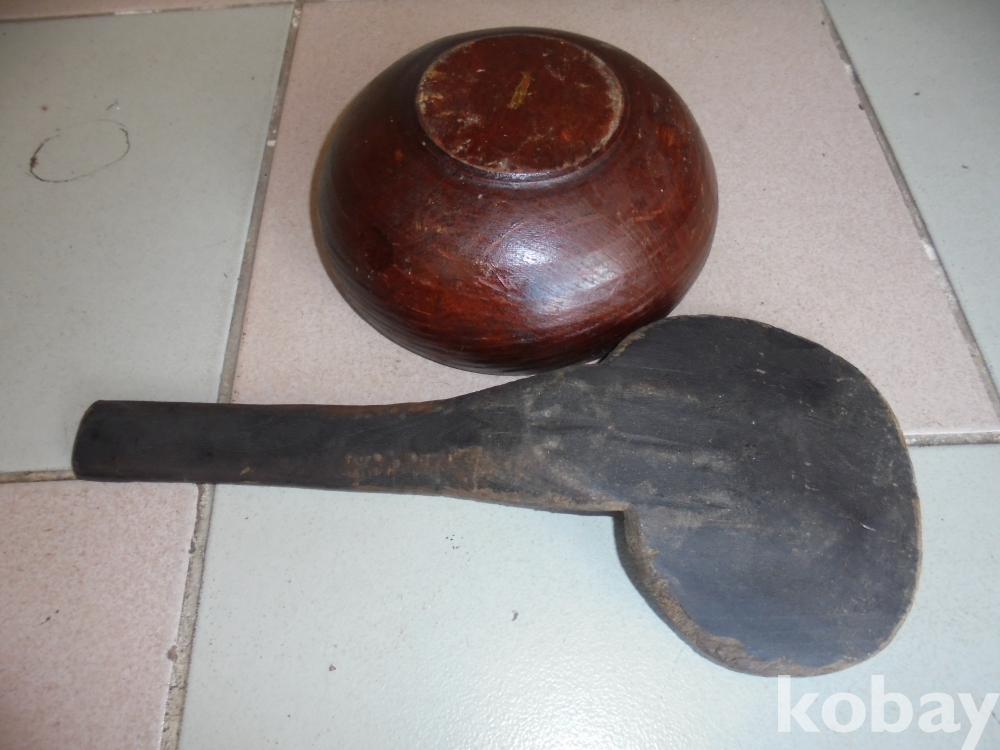 옛날 못밥그릇등 다용도사용하던 함지보다귀한것으로 특이나무로 만든 튼데없는 두가리 주걱은최고로 좋은 황철나무로 오래된 완벽한 주걱