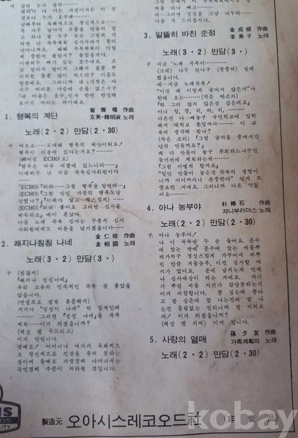 5. 사랑의 열매(孫夕友 作曲,가족계획의 노래)/노래(2.2)만담(2.30).