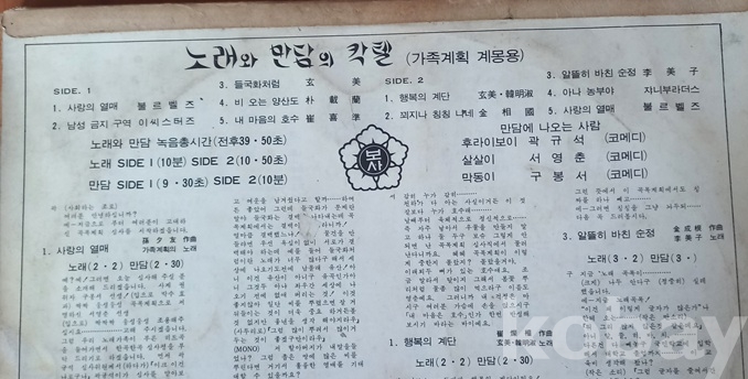 SIDE 2. 1. 행복의 계단(崔燦權 作曲,玄美/韓明淑 노래)/노래(2.2)만담(2.30).