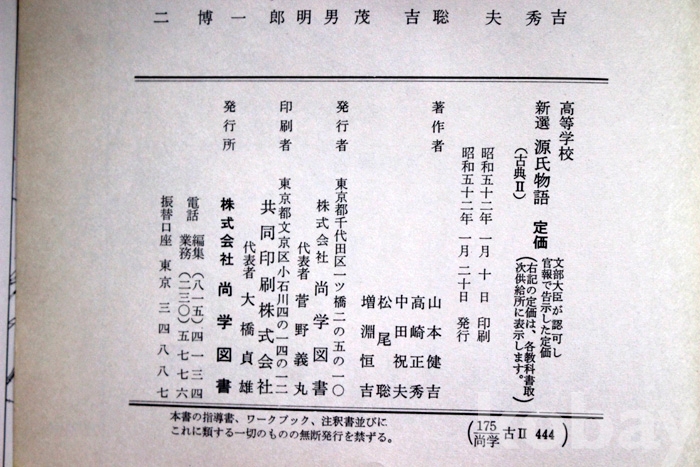 고등학교 新選 源氏物語 (고전 2) - 1977년. 일본 발행