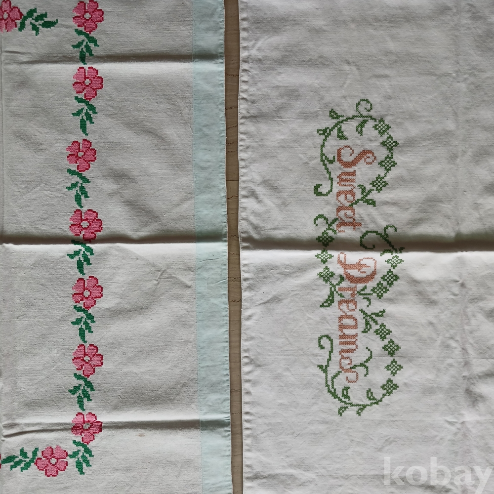 근대 십자수예 자수 상덥개 덮보 손수 실사용가능 튼실상태 섬유공예