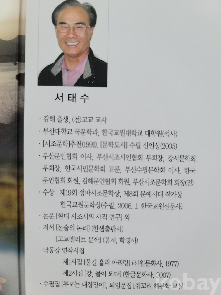 부산 혜광고등학교 국어 교사로 재직하다가 정년 퇴임한 '낙동강 시조시인'.