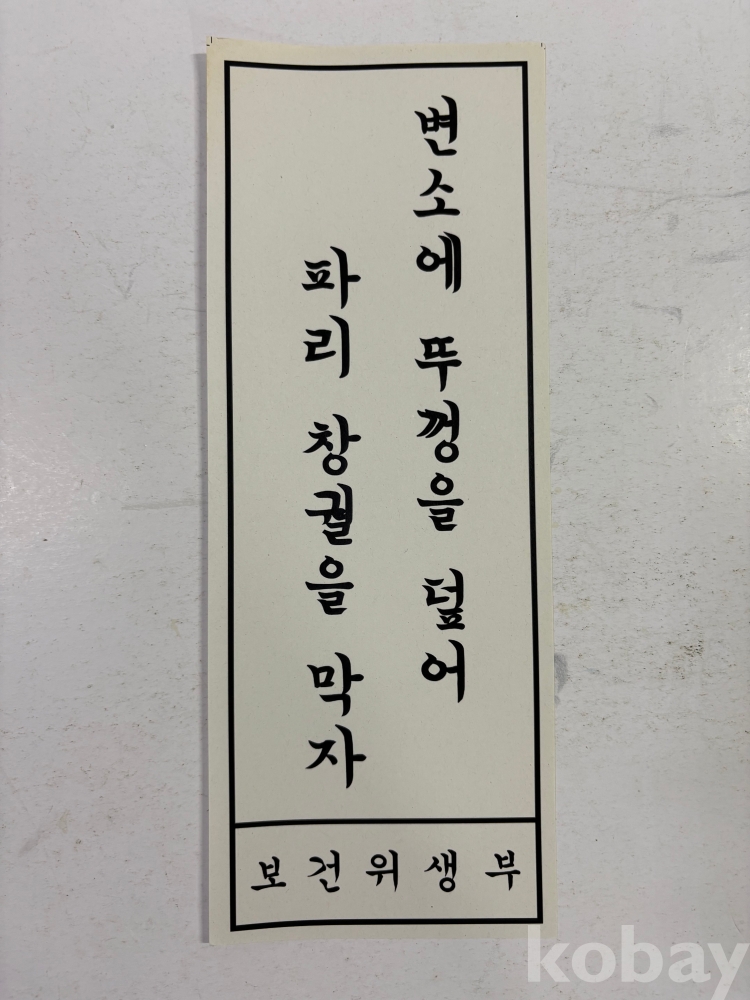 변소에 뚜껑을 덮어 파리 창궐을 막자 -발행처(보건위생부)