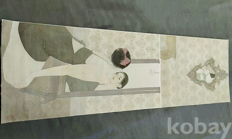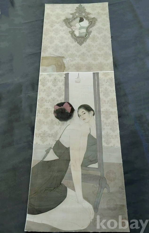 중국 인물화대가 하가영(何家英) 1990년대 초대형 견본(絹本) 공필인물화(工笔人物画)