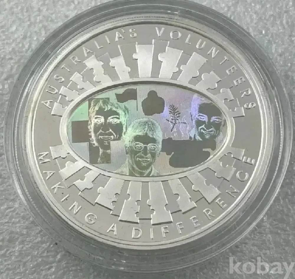 2003년 호주 왕립 조폐국에서 발행한 '호주 자원봉사자들'을 기념하는 당시 기술로 무척 어려운 피날레 홀로그램 실버 프루프 99.9% 순은화입니다.
