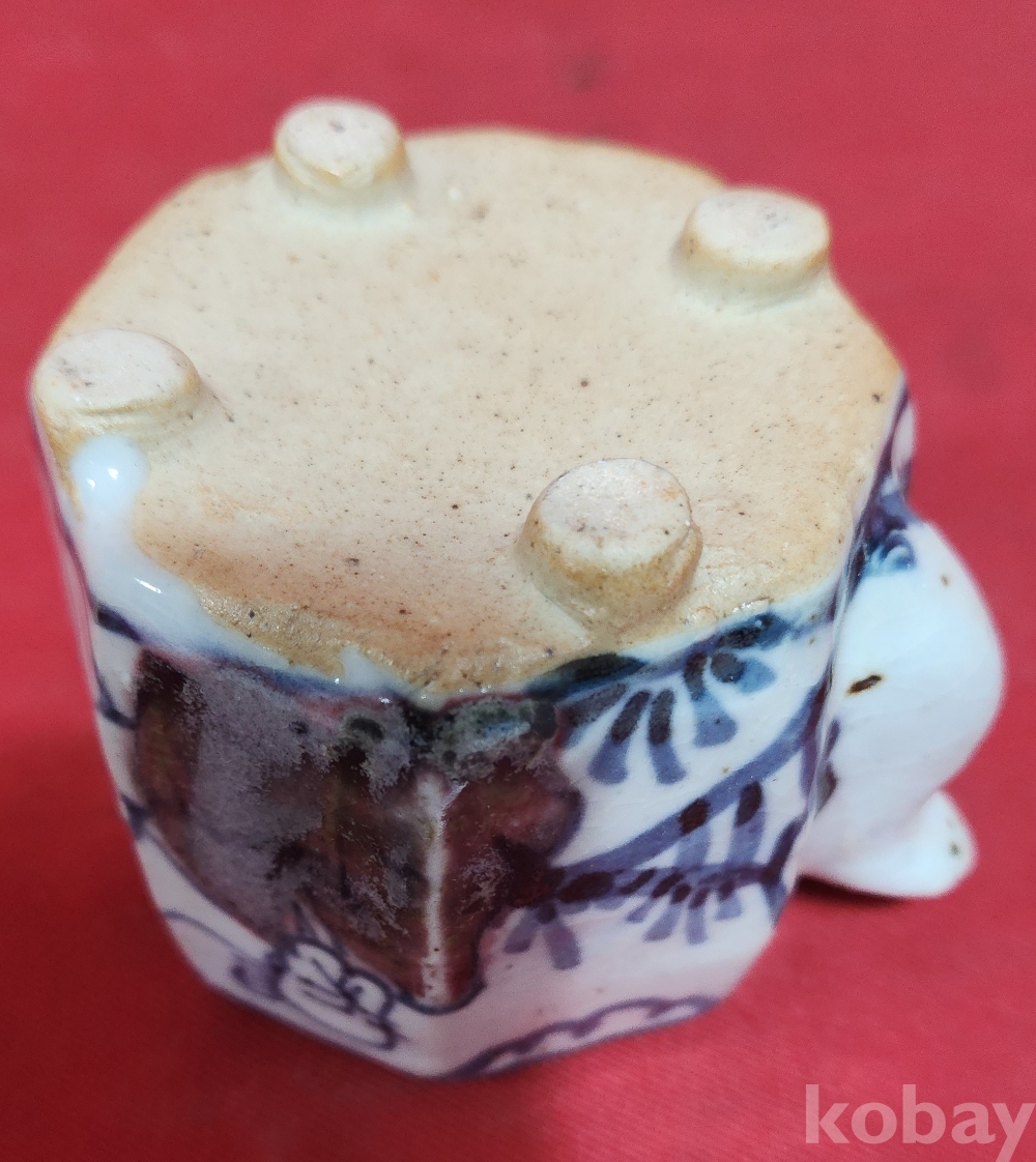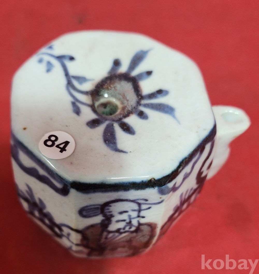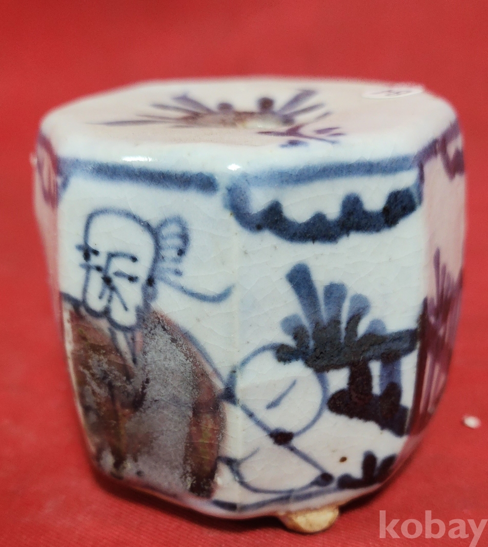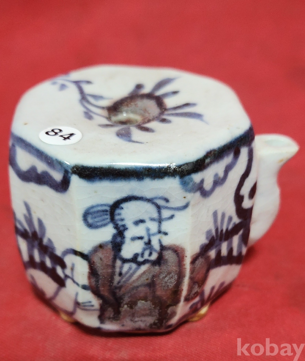 철화백자 인물문양 8각형 사족(四足) 연적입니다,