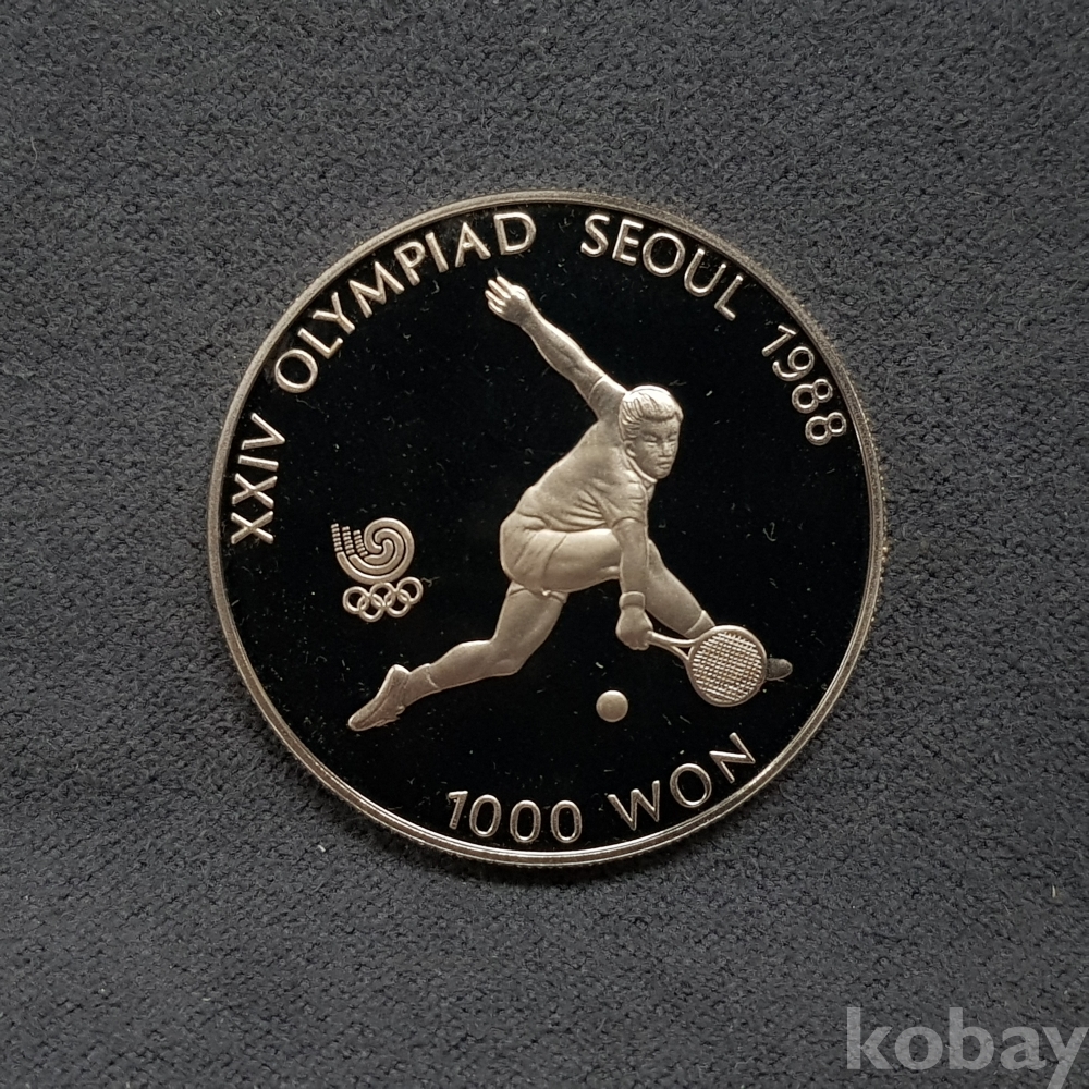 - 서울 올림픽 대회 2차 테니스 무광프루프 천원 기념주화