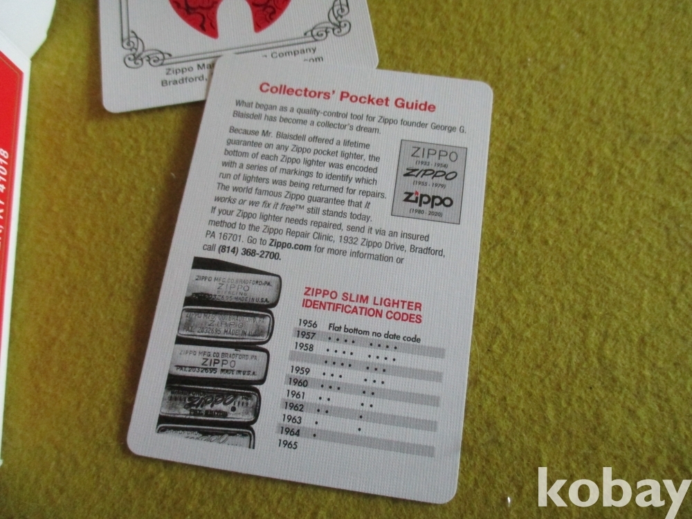 (((포카카드))) 미국에서만든 지포연도별 식별표가 들어있는 지포 (ZIPPO) 포카카드