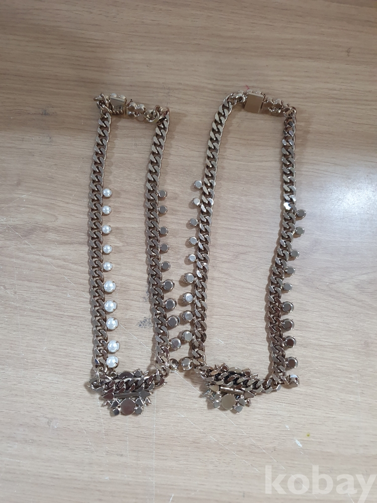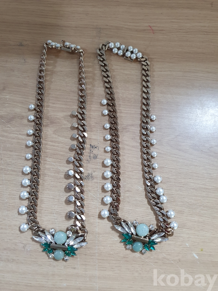 {천원경매}10-0448 목걸이2개22센티( 보석하나빠졌음)