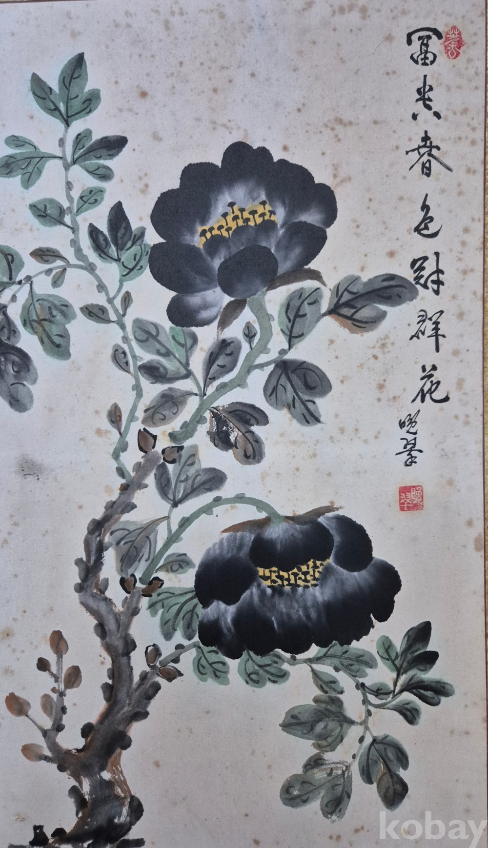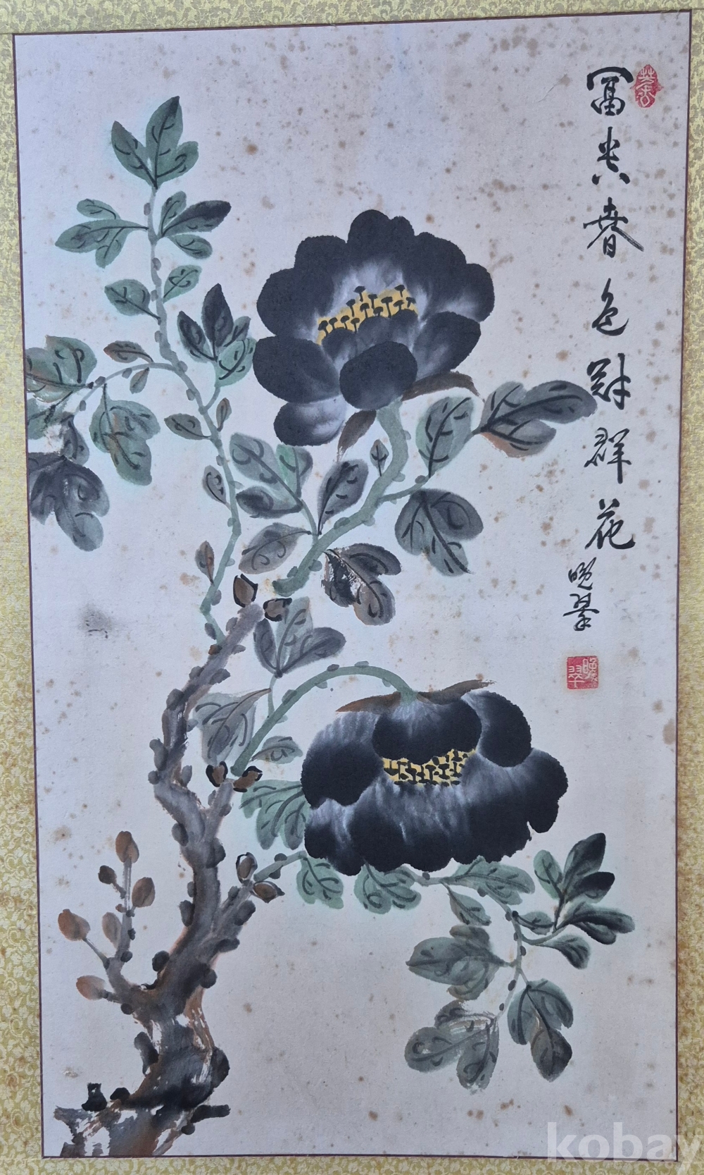 각종 미술대전 심사위원 역임하신 유명 문인화가 만취 김용복'화백님 수작 목단화'이오니