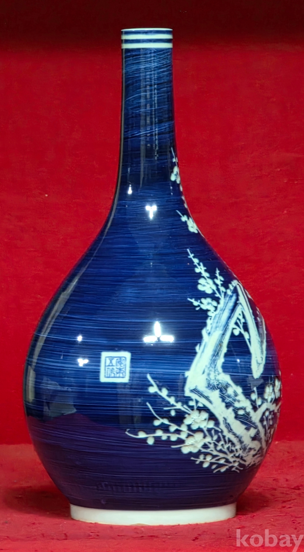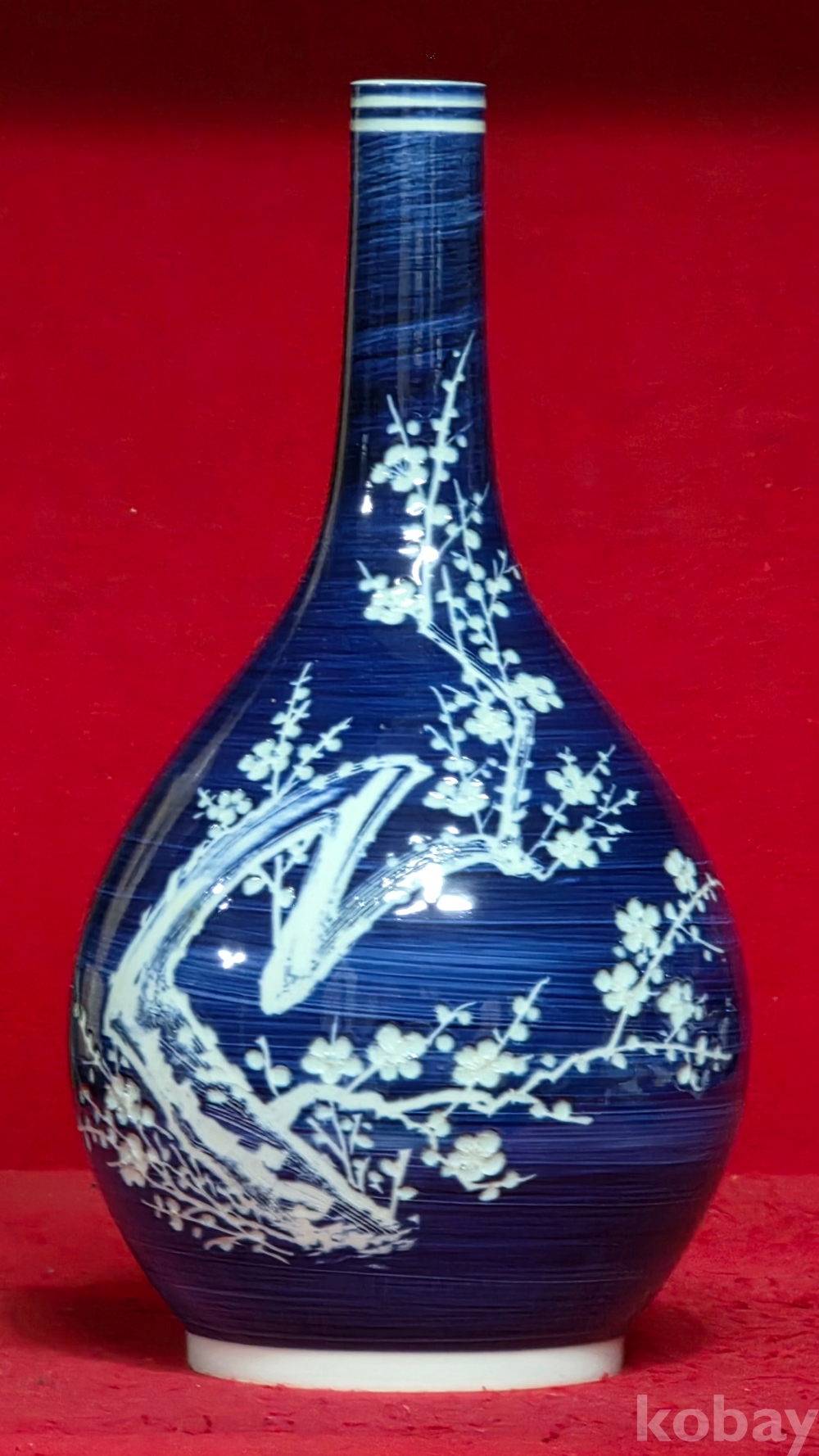 인간문화재 호산 안동오 선생님의 청채 매화 주병 대형 입니다