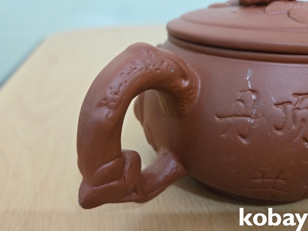 학 모양 손잡이가 있는 자사 주전자 입니다.