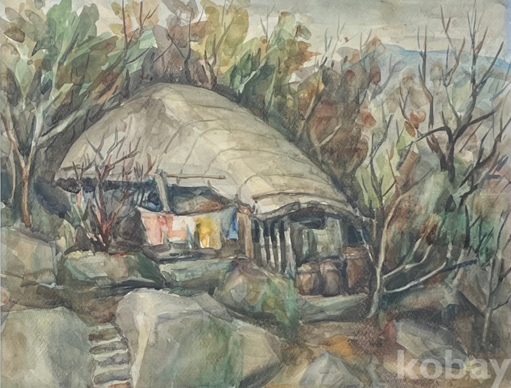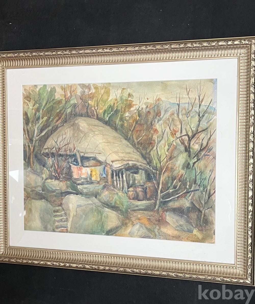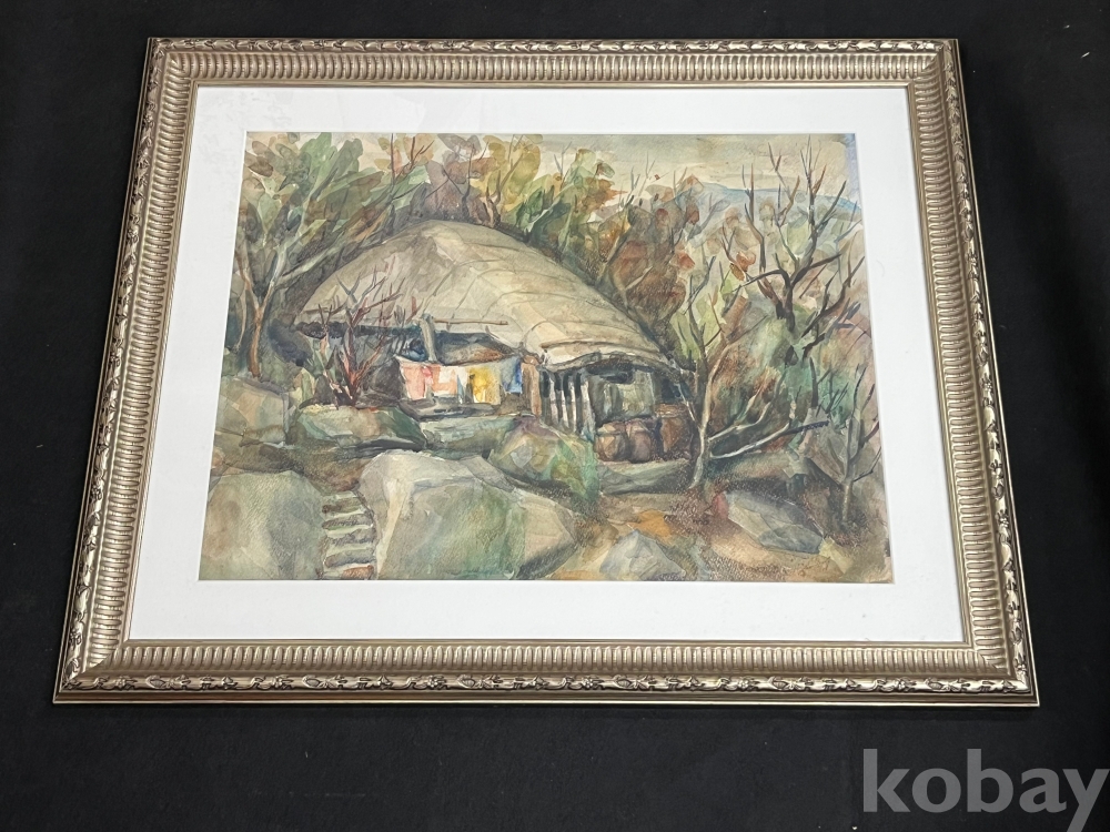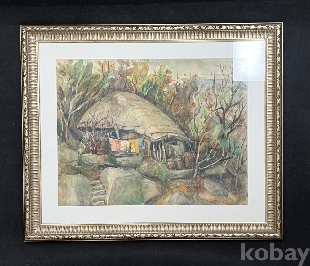 이 작품은 수채화가 이강조 화백이 한국의 전통 민가를 주제로 그린 수채화입니다.