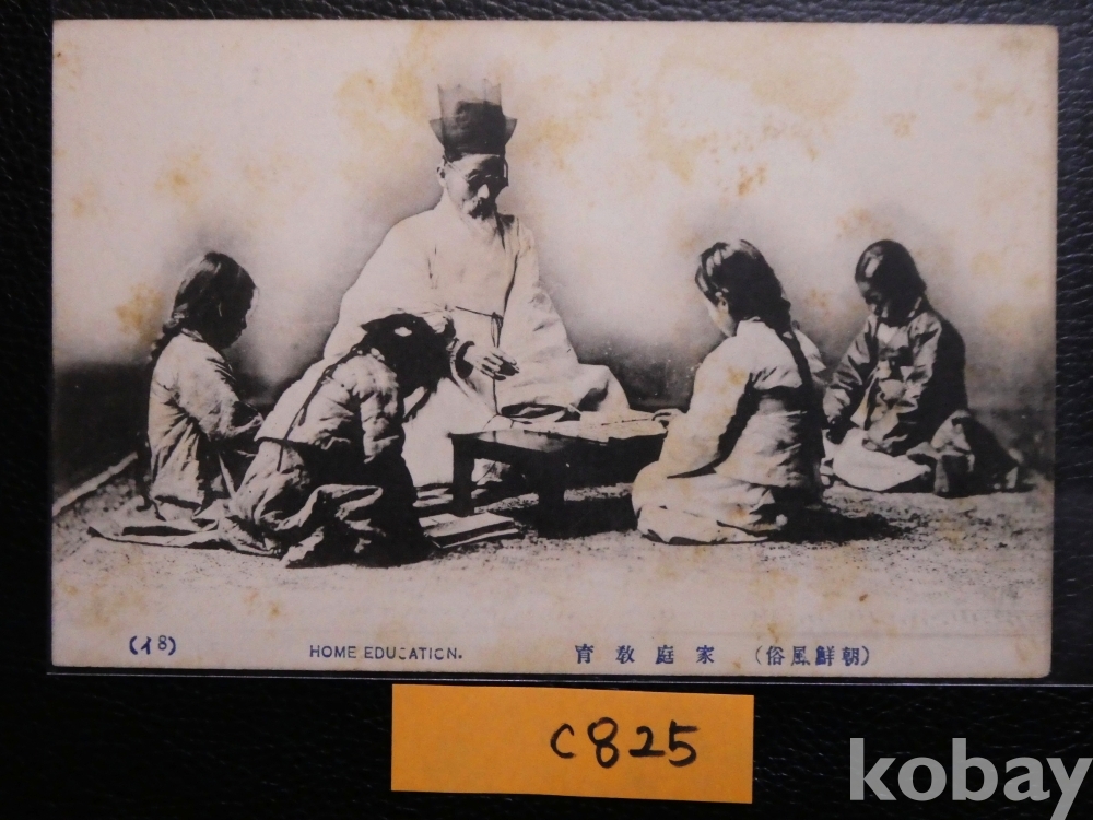 ▣근대한국엽서(진본): 조선의 서당 모습, 가정교육, 훈장과 아이들 모습/1매/역사자료, 일제시대, 일제강점기 사진엽서, 그림엽서, 회엽서, C825