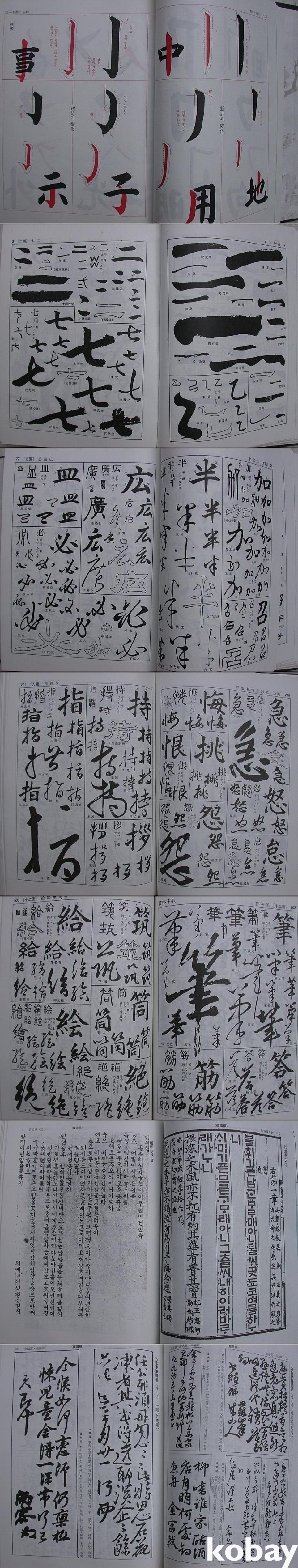 ▒ 19.2×26.4cm. 서문/서예비결12쪽 + 기본편68쪽 + 실용편(색인12쪽+서체자전740쪽) + 감상편314쪽 + 부록편96쪽(총1,242쪽). 세로쓰기 양장책이며 책케이스에 들어 있다.