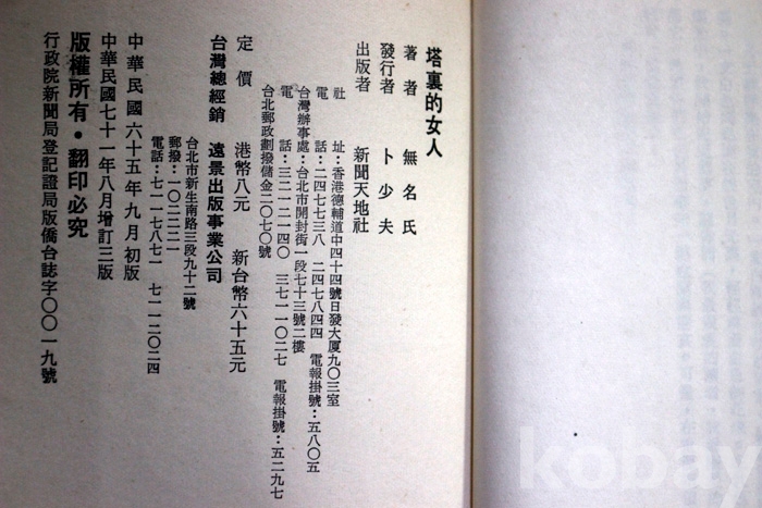 (중국서적) 塔裡的 女人 (탑리적 여인) - 1976년. 중국발행 ...