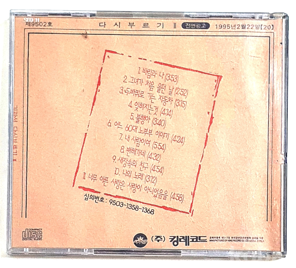 물 품 명 | 김광석 리메이크 앨범 , 김광석 다시 부르기 2 / '어느 60 대 노부부 이야기' , '잊혀지는 것' / 1995년 |