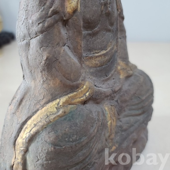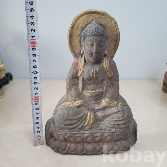 오래된 연식을 자랑하는 통나무 목불상 입니다. 나무 조각에 당채로 색을 더했습니다. 곳곳이 색이 바랬지만 세월에 비해 대체적으로 형태나 색감은 좋습니다. 사이즈도 좋고 분위기 넘치는 귀한 기물 소개합니다