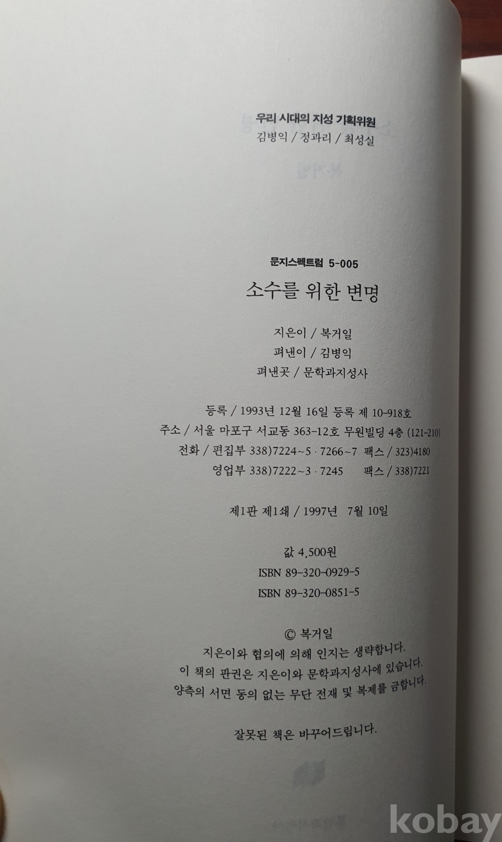 복거일 산문,문학과 지성사,1997년 초판,상태는 양호 깨끗한 책,저자 친필서명본