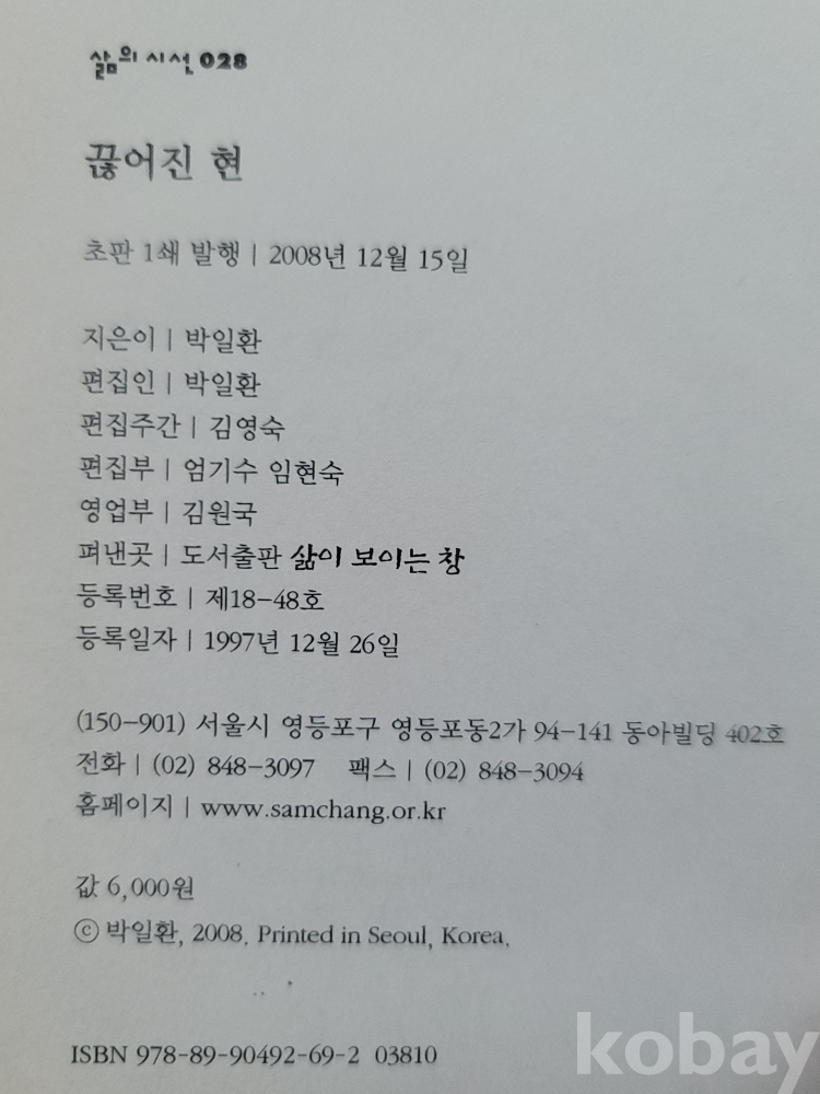 2008년 발간한 제2시집 『끊어진 현』