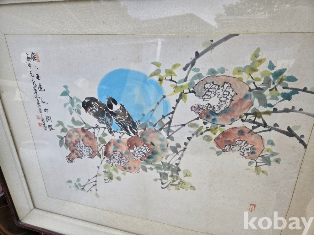 새와 석류 표현 그림 액자 입니다.