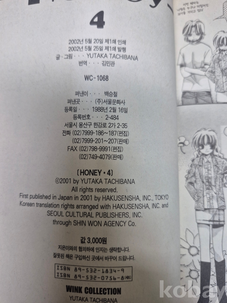 2000년대 만화 HONEY 1~4편 심술쟁이 2002년 1.3.4 1998년 정말로 정말로 1 총 8점 일괄 13*19*1.5