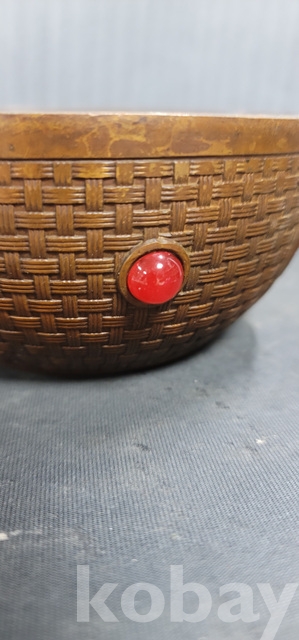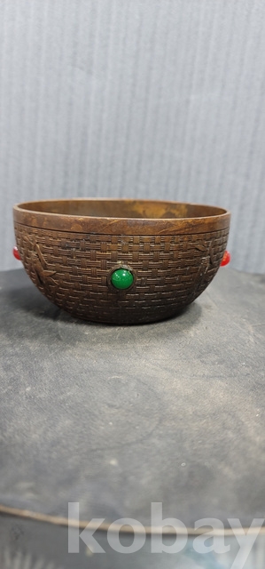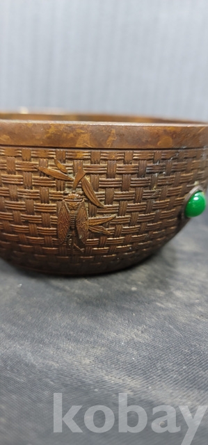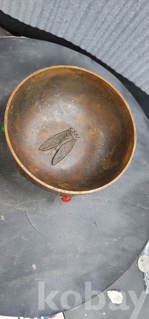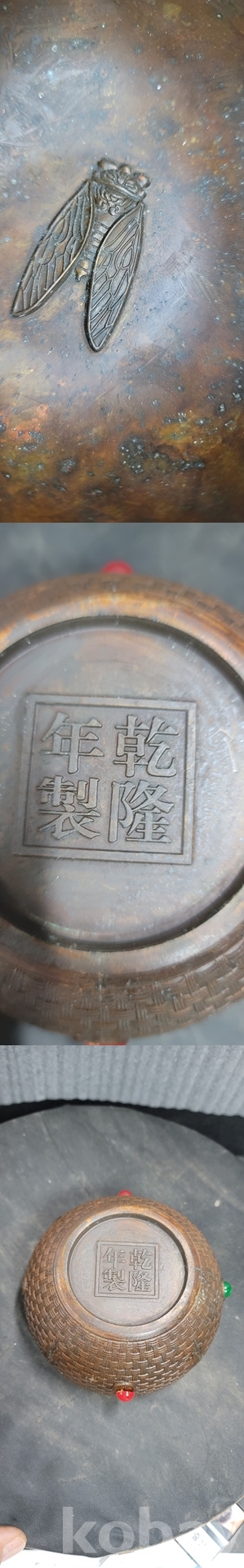 c-154.오래된무거운건륭년제 안밖으로 매미가조각된 보석박힌청동찻사발