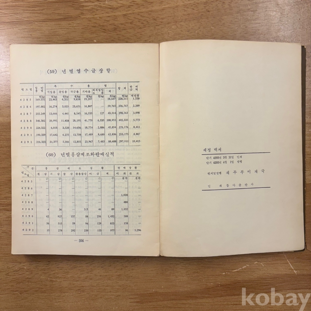 [희귀본, 한국현대사, 제1공화국, 경제개발] 재무부, <재정백서>, 재무부, 1959, p. 356. 중급(사진참조)