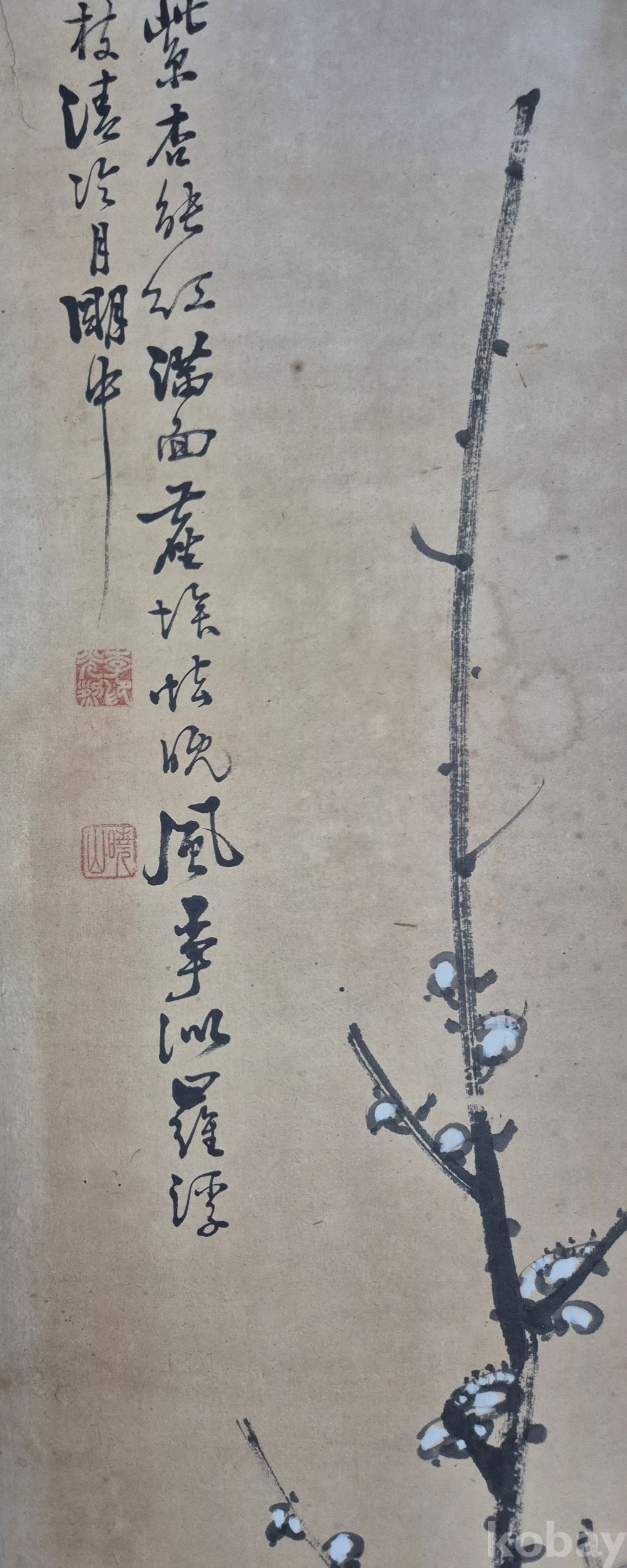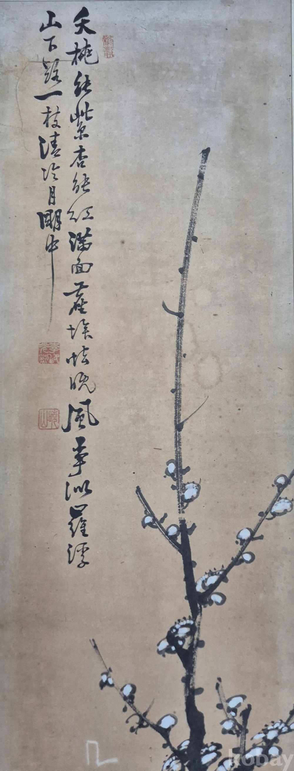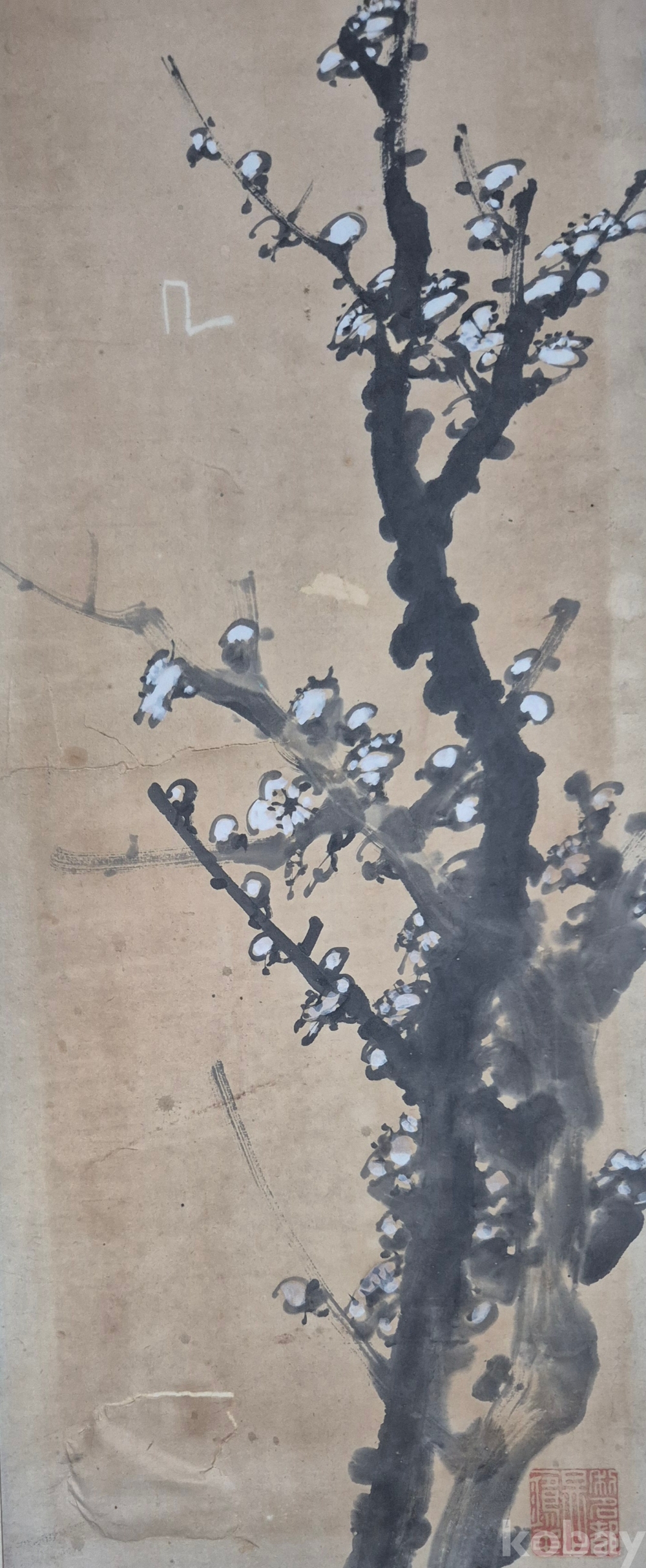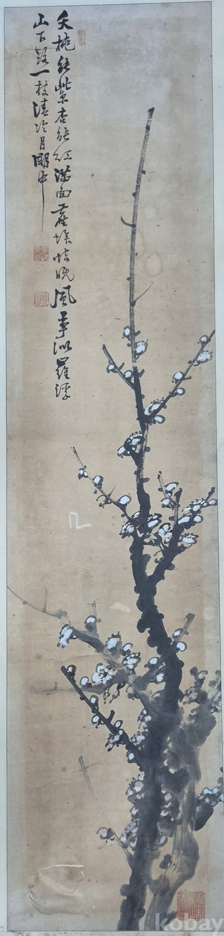 호남권 서화 발전에 지대한 공헌을 하신 유명화가 효산 이광열'화백님 수작 매화도'이오니 작품 이미지상 수결 및 낙관