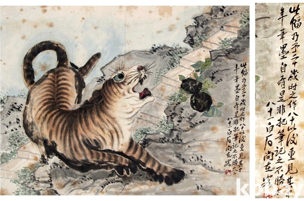 제백석(치바이스.齊白石,1864-1957) 초창기 오리지날 사의화 영모도 '老虎'입니다.