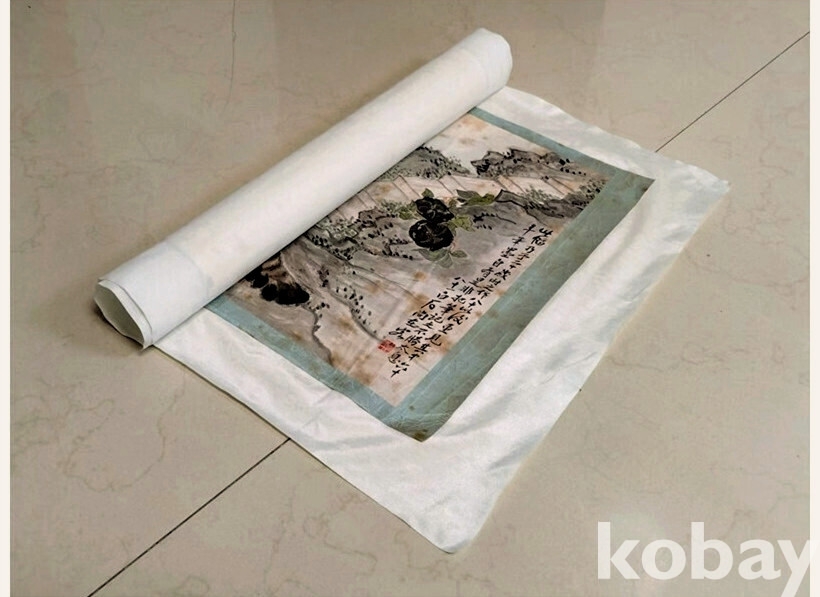 두번째 사진처럼 화첩에서 작품과 비단부분만 챙겨 다른 작품들과 함께 말아서 반입한 것입니다.