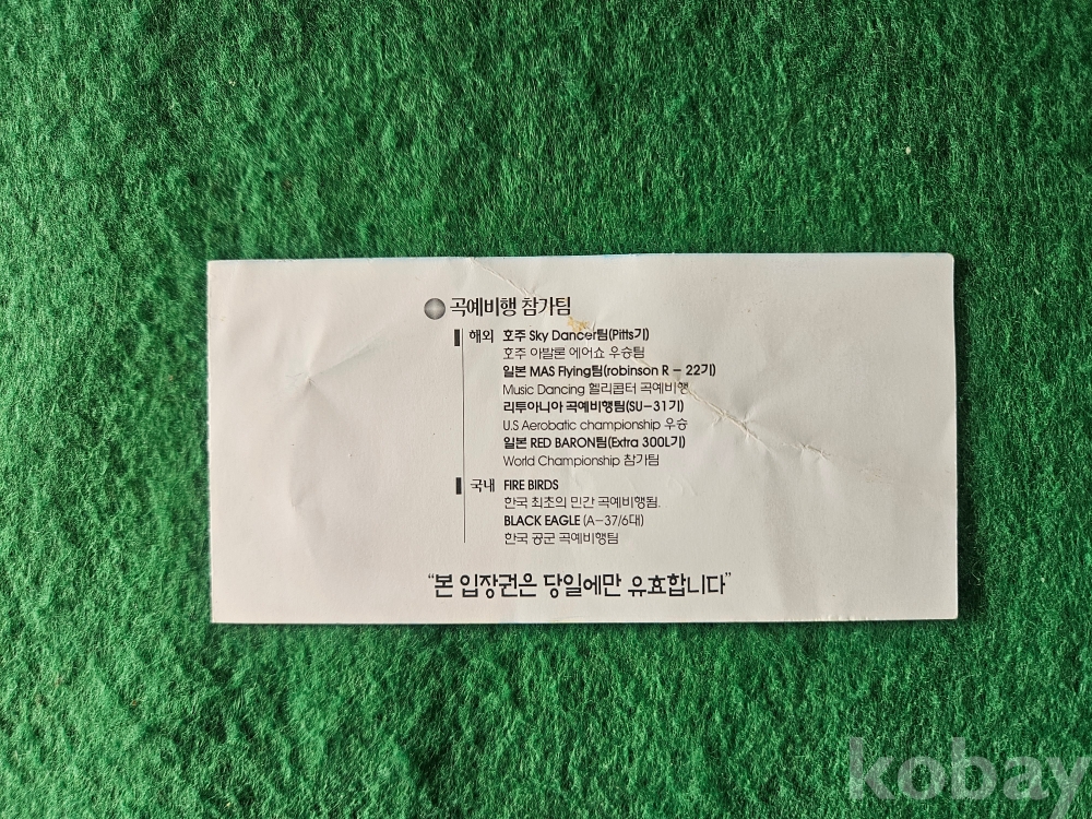 - 안산에어쇼" 99 " 입장권 1매 (소인 5,000 원 )