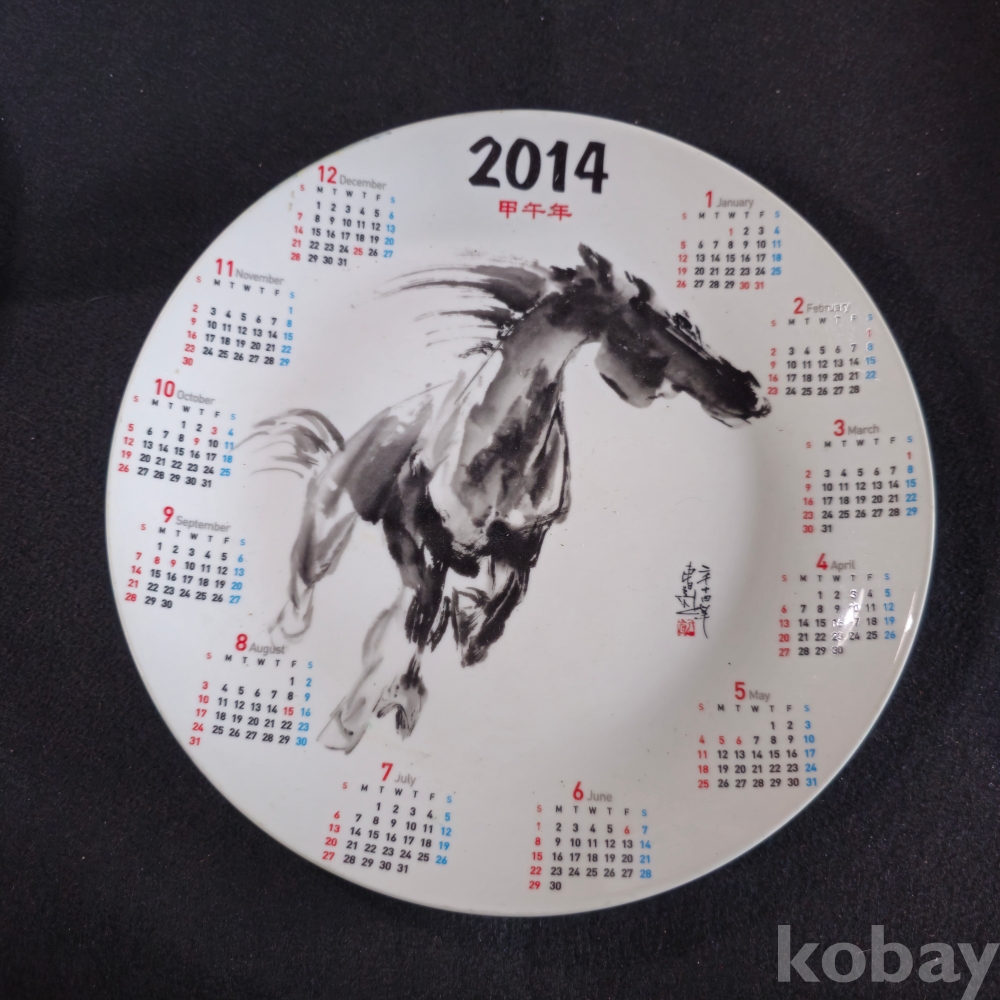 (((근현대사자료/캘린더접시))) 2014 갑오 (甲午) 년 말띠 캘린더 도자기접시 (취산 조용백화백 작품)