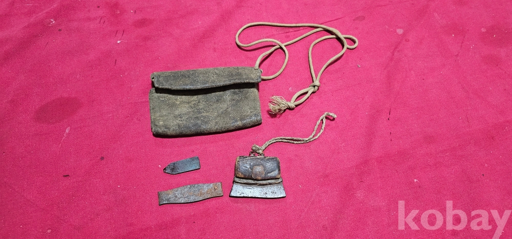 각종 부싯기 3개 와 가죽 담배 쌈지 입니다