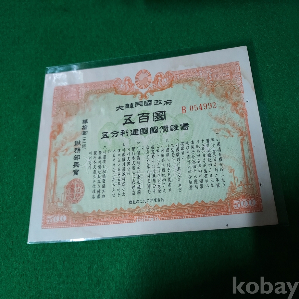 대한민국 1957년 건국채권 10회을조500환 사용제