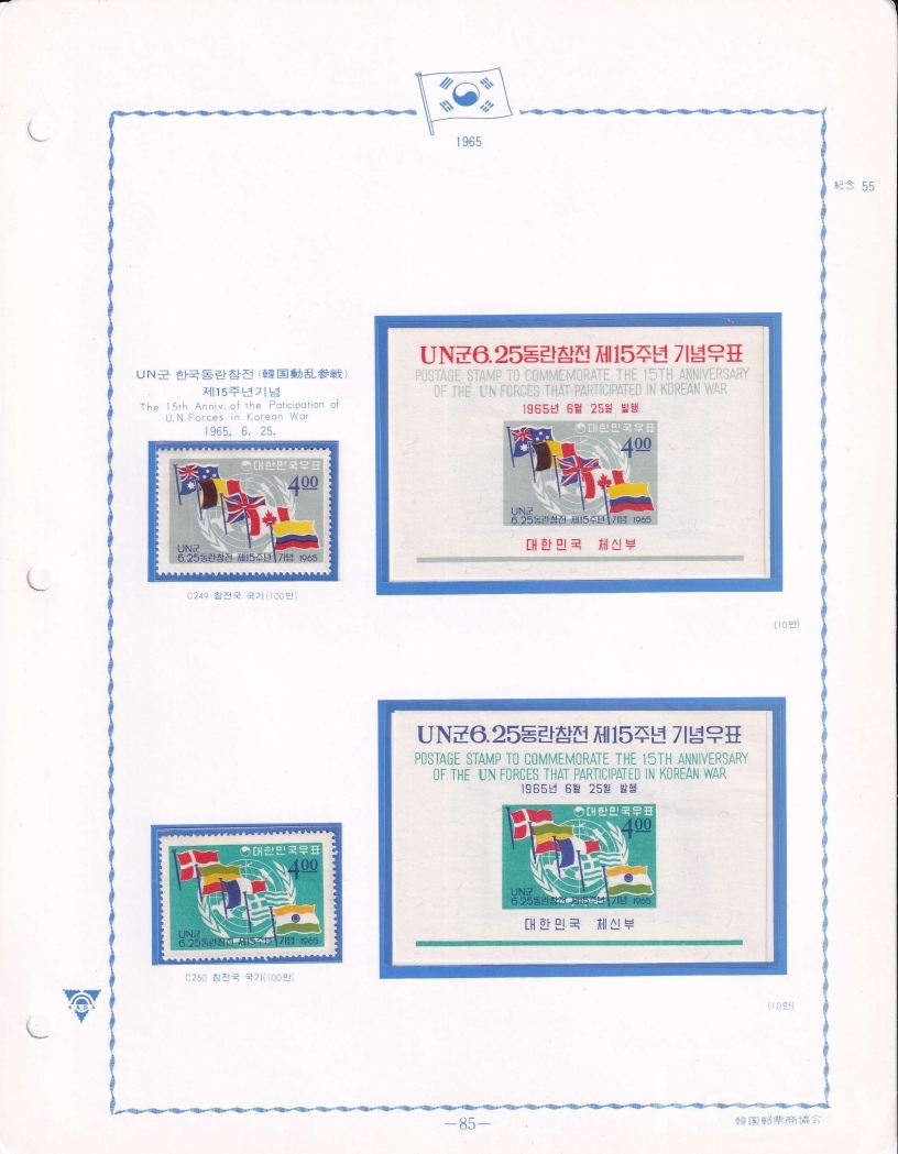 - 한국우표앨범 모음展 - 1965년 UN군 6.25동란참전 제15주년 기념 우표 4종