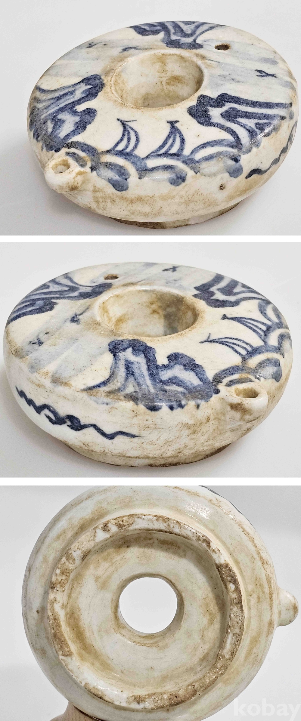 @상태: 연대감 좋은 청화백자 또아리연적-02(산수문2)입니다.