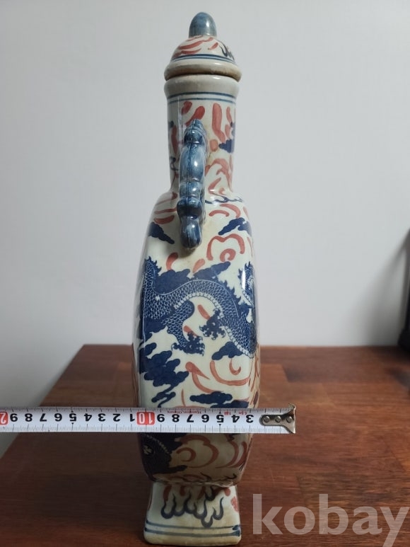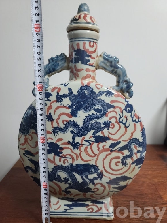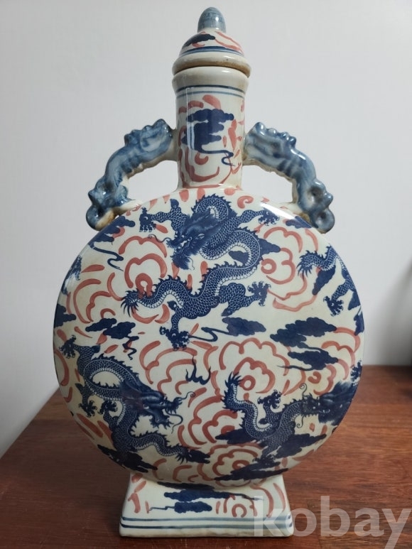 편병 형태의 용문이 담긴 중국 도자기 입니다 상태가 좋고 바닥의 관지도 있습니다. 즐거운 감상되세요