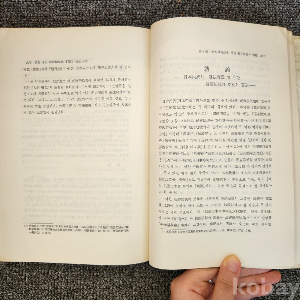 [희귀본, 일제 침략사, 식민지 지배정책] 鈴木敬夫, <법을 통한 조선 식민지 지배에 관한 연구>, 고려대학교 민족문화연구소, 1989, p. 398, 상태 중급(사진참조)