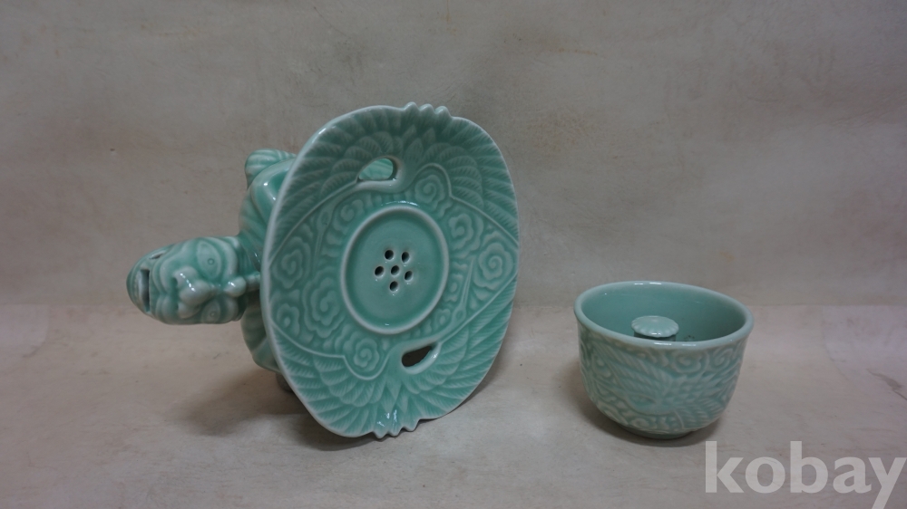◈◈청자../음 양각 운.학문,ㅡ''거북형 계영배 한점◈◈