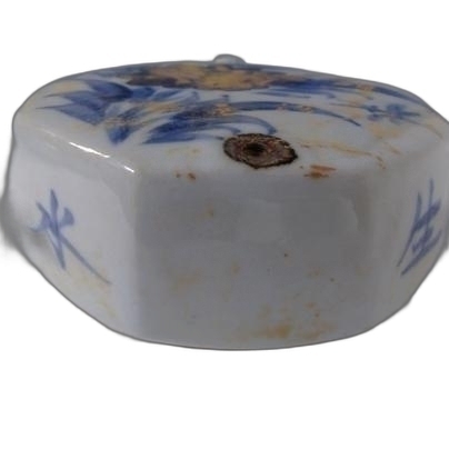 철화로 꽃 문양이 있는 8각 연적 입니다.