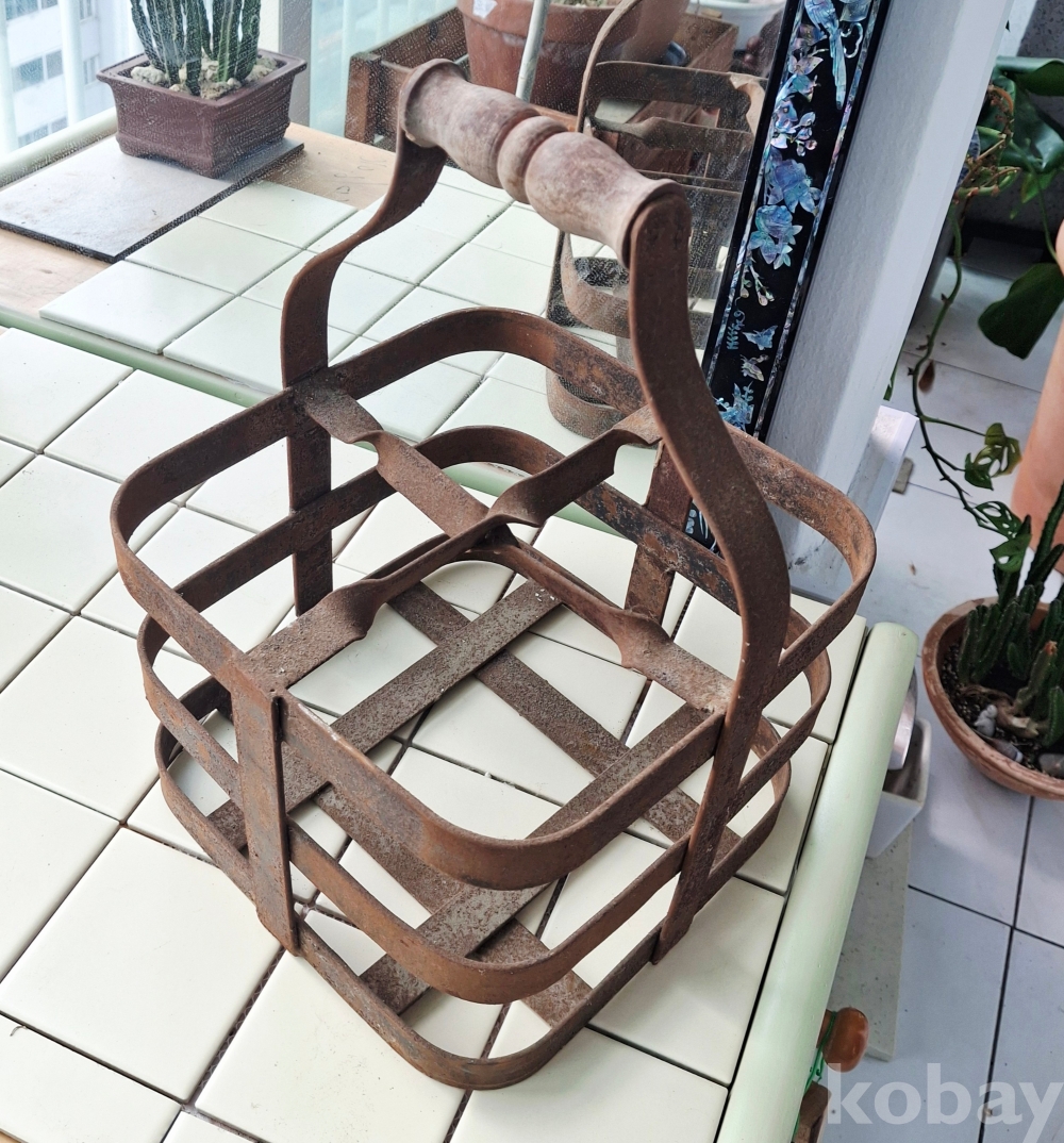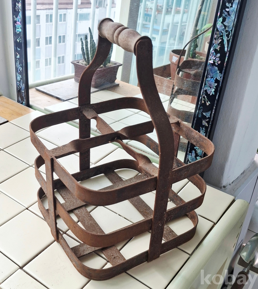 술병이나 화분등 꽂아 두기 좋은 나무 손잡이에 몸통 금속 제품