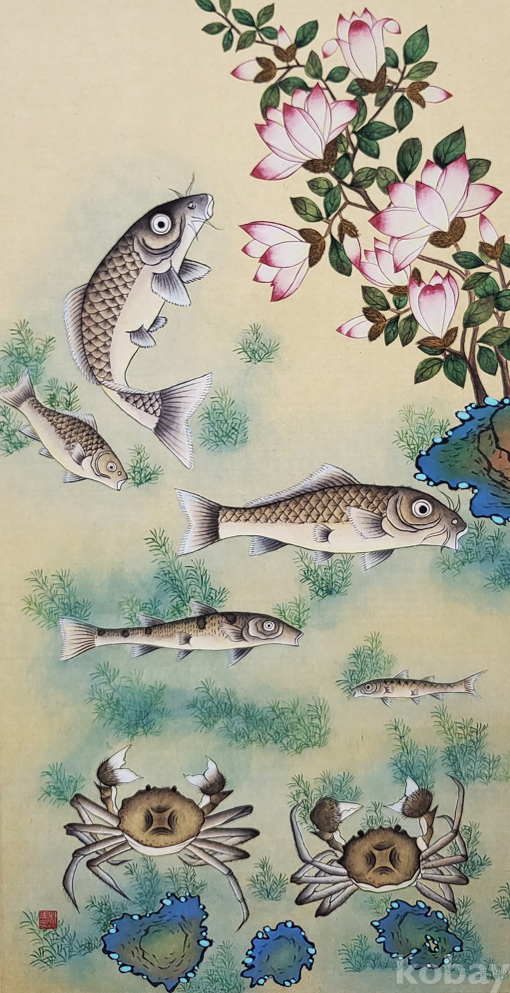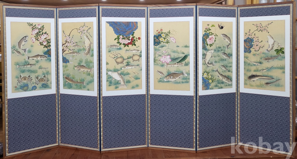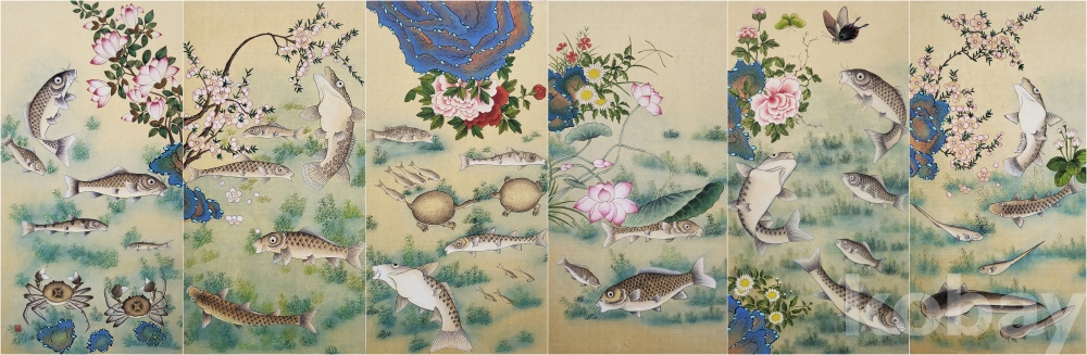민화 民畵 어해도 魚蟹圖 6폭 병풍 屛風 작품