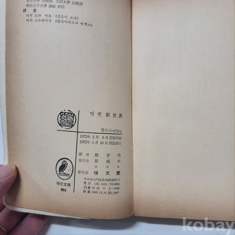 [희귀본] 멋진 신세계 (올더스 헉슬리/ 서문문고 1972년 초판본) : 중급/서고T103