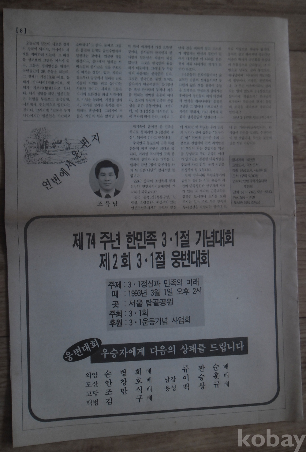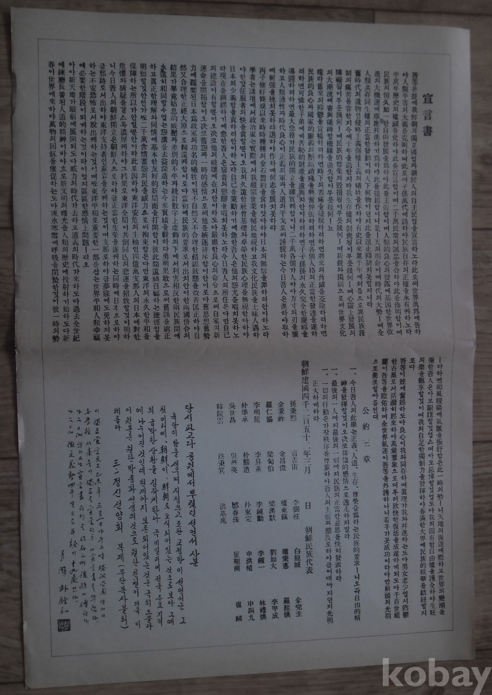 8면 발행과 간지로 삼일운동 선언서가 있습니다.