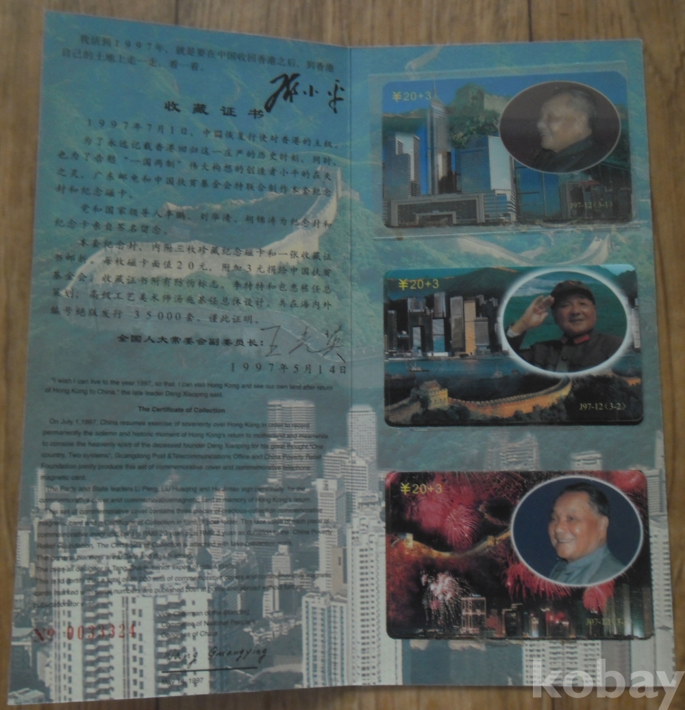 1997년 홍콩반환기념 중국전화카드 3종첩(등소평)