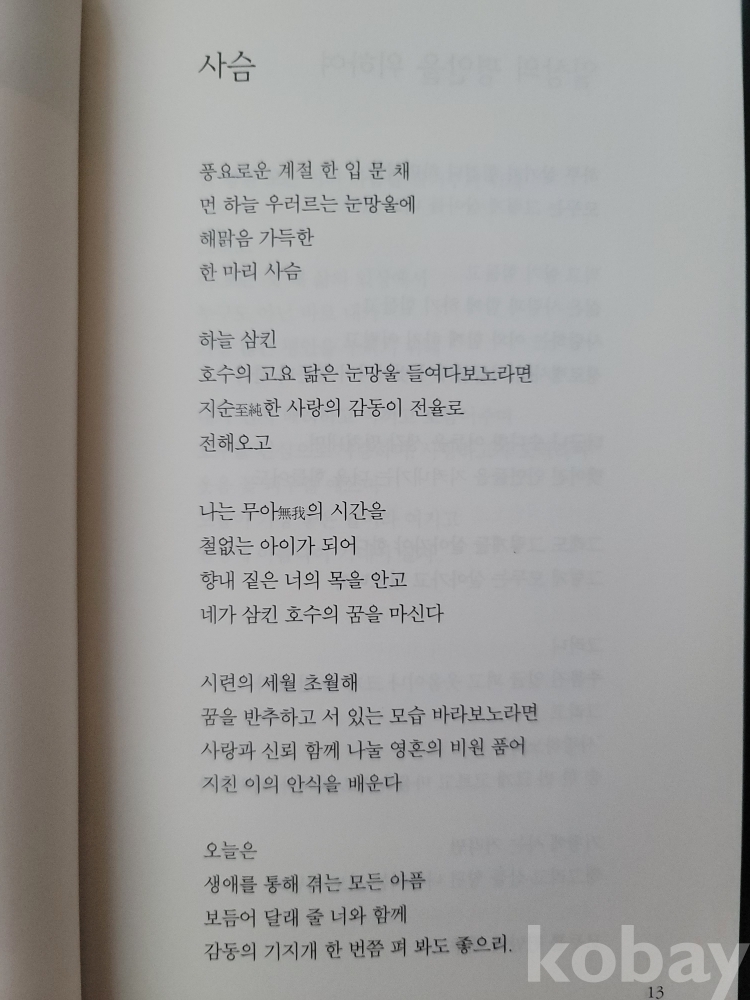 시집 『슬프지 않은 목가』(2002) 『설원(雪原), 이 아름다운 여백(餘白)』(2014) 『기다림의 미학』(2016) 『사무치는 그리움을』(2017) 등.