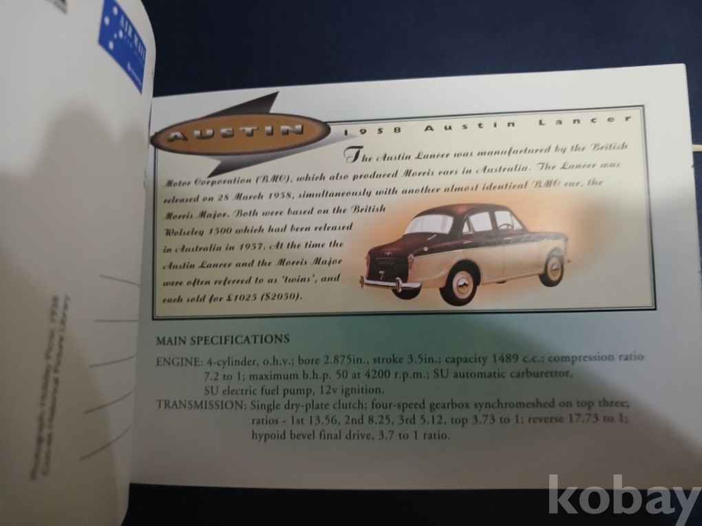 FORD, HOLDEN, AUSTIN, VALIANT 클래식카 설명 및 우표 수록
